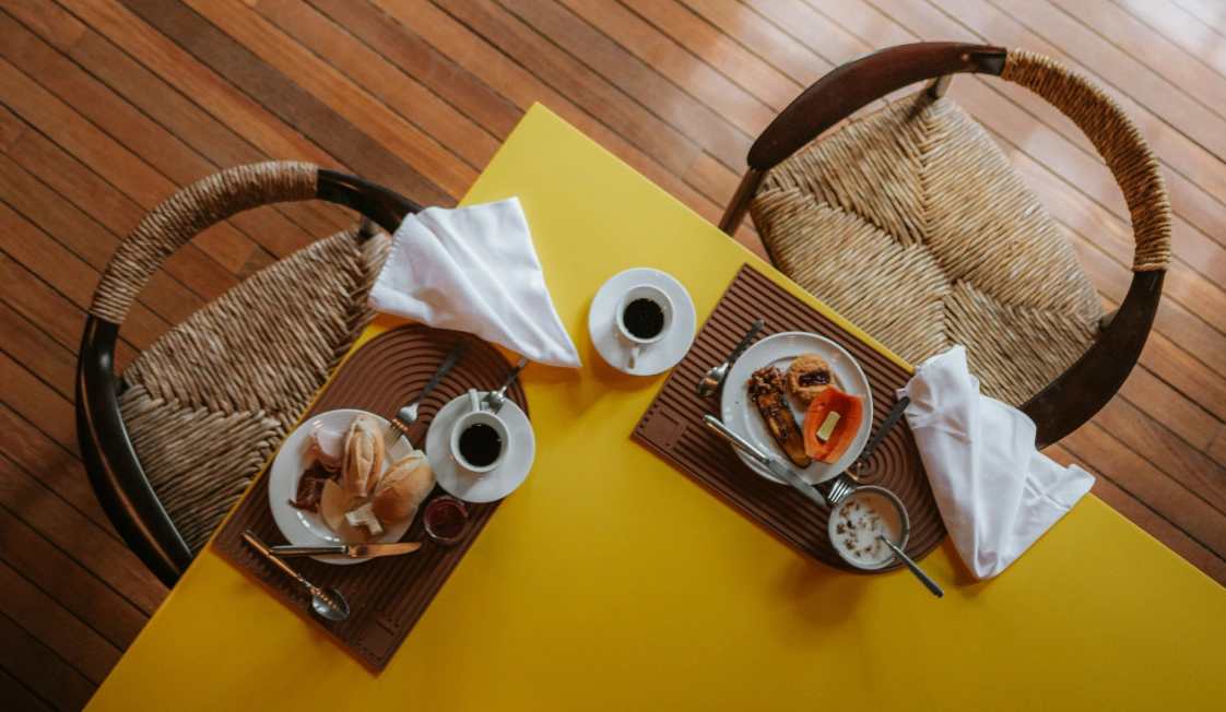 Café da manhã servido a qualquer hora e lugar, de acordo com a preferência e comodidade dos nossos hóspedes.