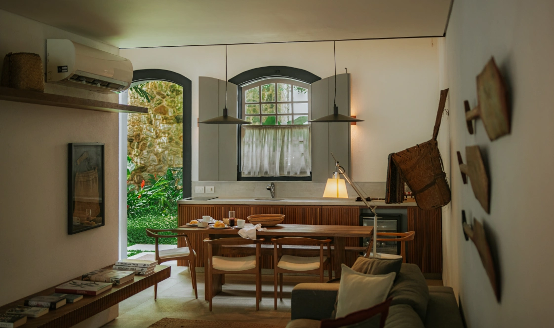São 27 suítes e villas distribuídas em um conjunto de casarões coloniais ao redor de um jardim central, no Centro Histórico de Paraty, e uma villa privativa no Saco Mamanguá.