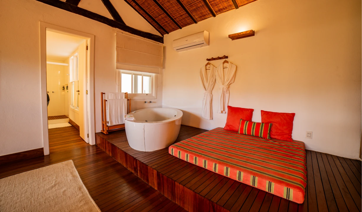 O corpo relaxa sem esforço e a mente encontra espaço para se reorganizar. Nossas acomodações são ambientes confortáveis, refúgios onde o bem estar se torna parte essencial da experiência de estar em Paraty no seu ritmo mais gentil.‑estar se torna parte essencial da experiência de