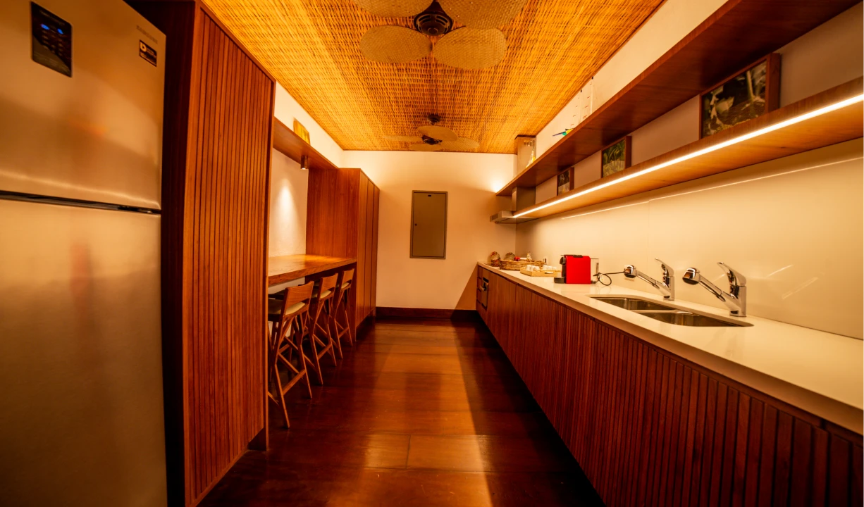 Há uma atmosfera natural de calma — combinação entre a suavidade dos jardins, a luz mansa que entra pelas janelas e a arquitetura que dialoga com a as memórias mais afetivas do lugar.
