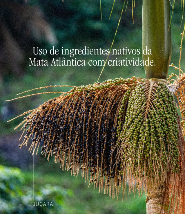 Uma reimaginação da alta gastronomia que celebra os ingredientes nativos da nossa região, onde técnicas refinadas encontram sabores autênticos da Baía de Paraty e da exuberante Mata Atlântica.