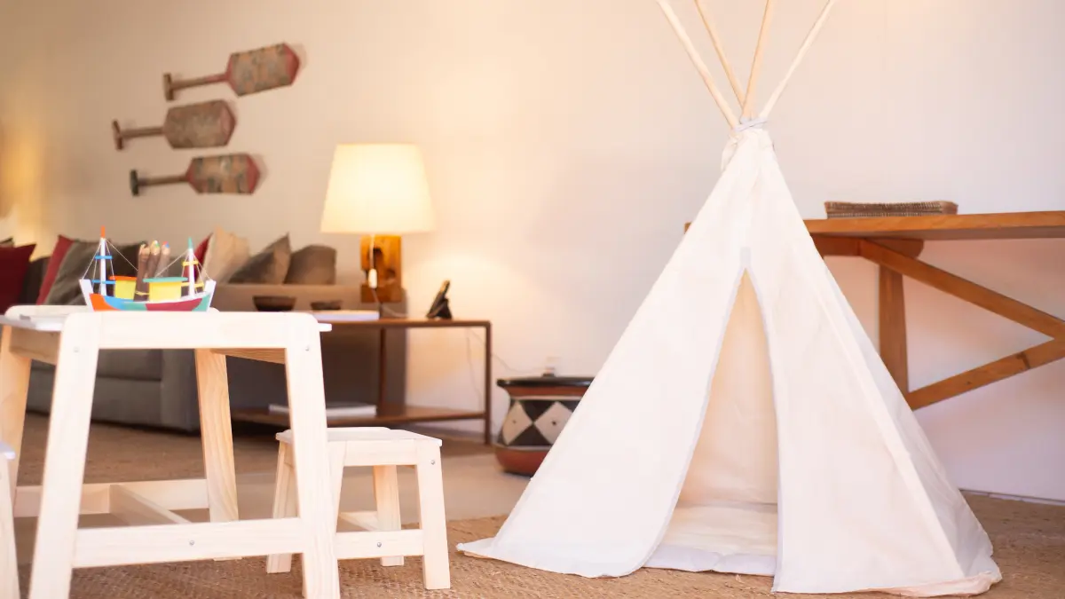 There are two floors. In the first one, there is a living room with sofa, armchairs and an inviting small library for more reserved afternoons, kitchen and dining table for 6 guests. On the second floor, there is a broad and charming suite, and the bathroom has an inviting shower.