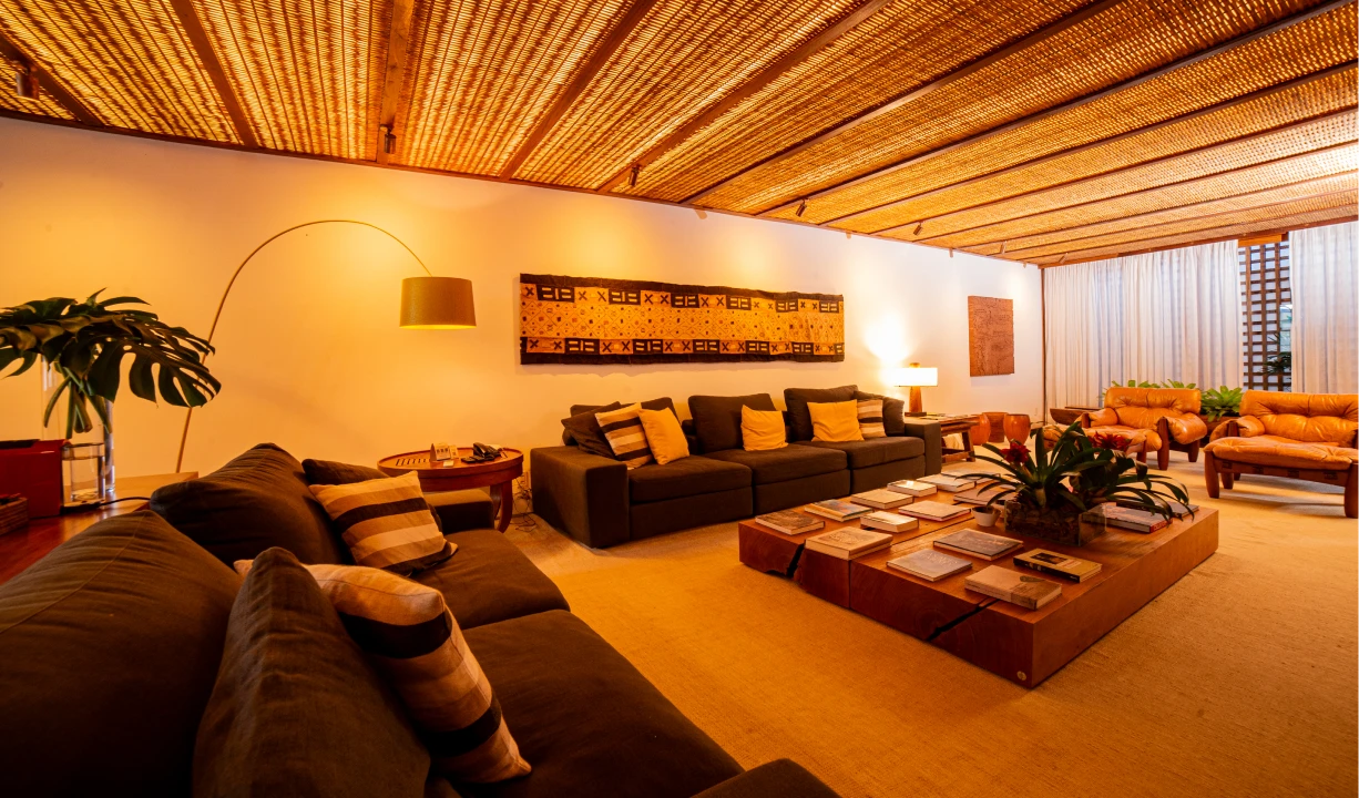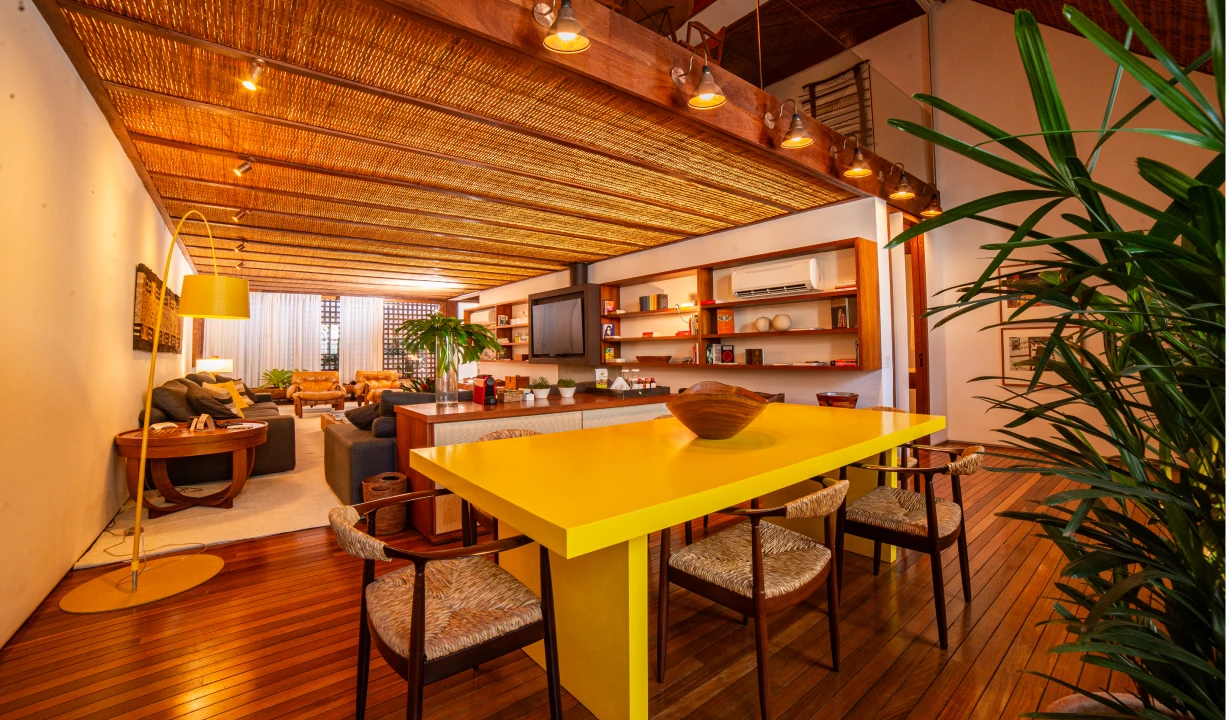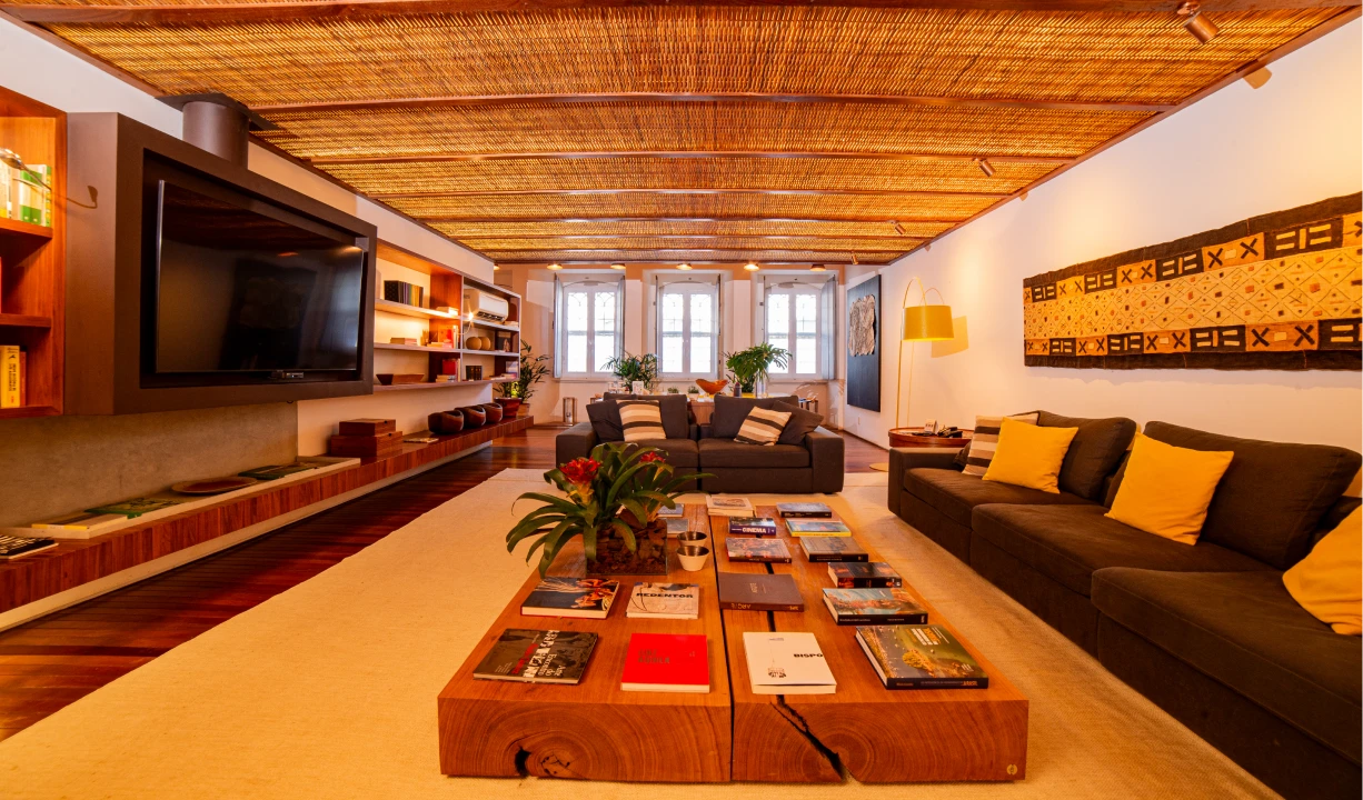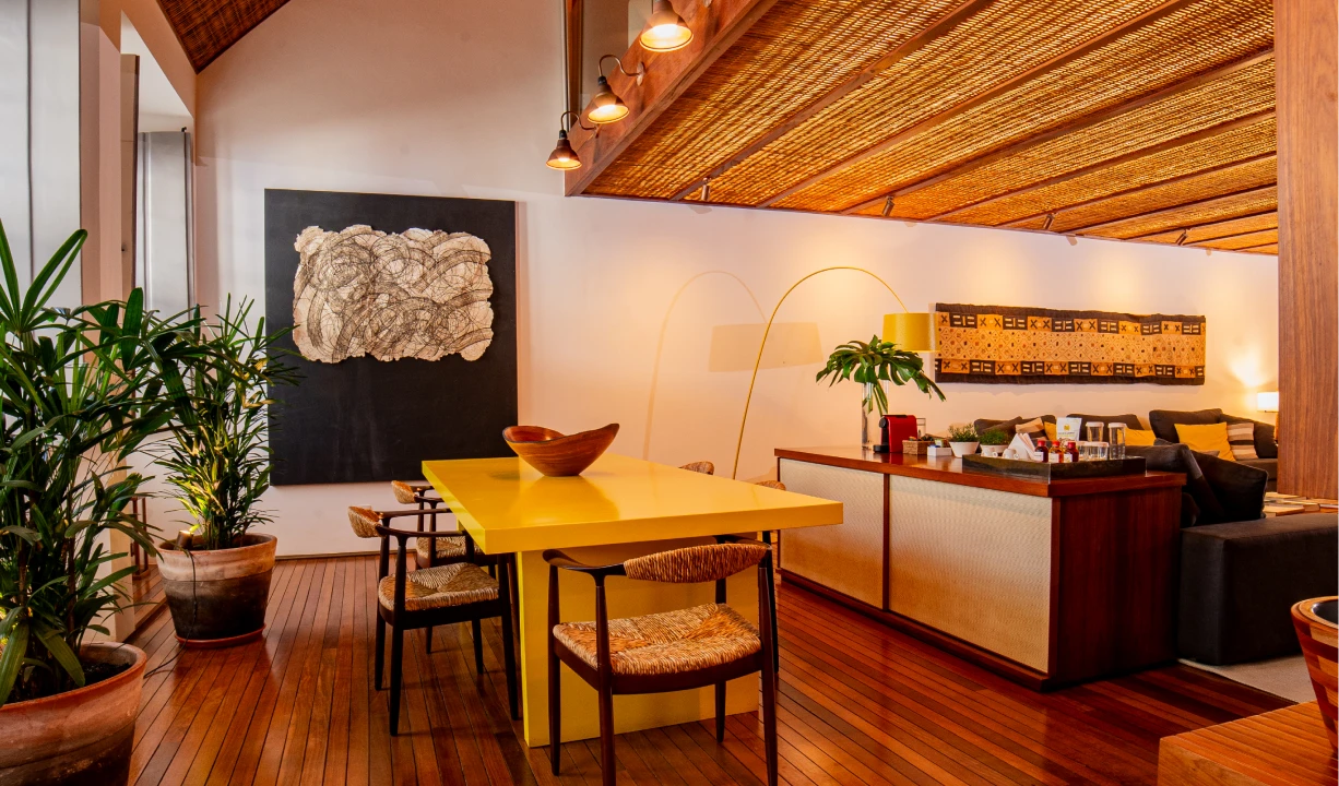 É a maior acomodação da Pousada Literária, com 180 m². São dois andares com ambientes com vista para a cidade. Sala ampla e confortável com as poltronas Mole do arquiteto e designer brasileiro Sergio Rodrigues, biblioteca, lareira e uma ampla mesa de jantar.