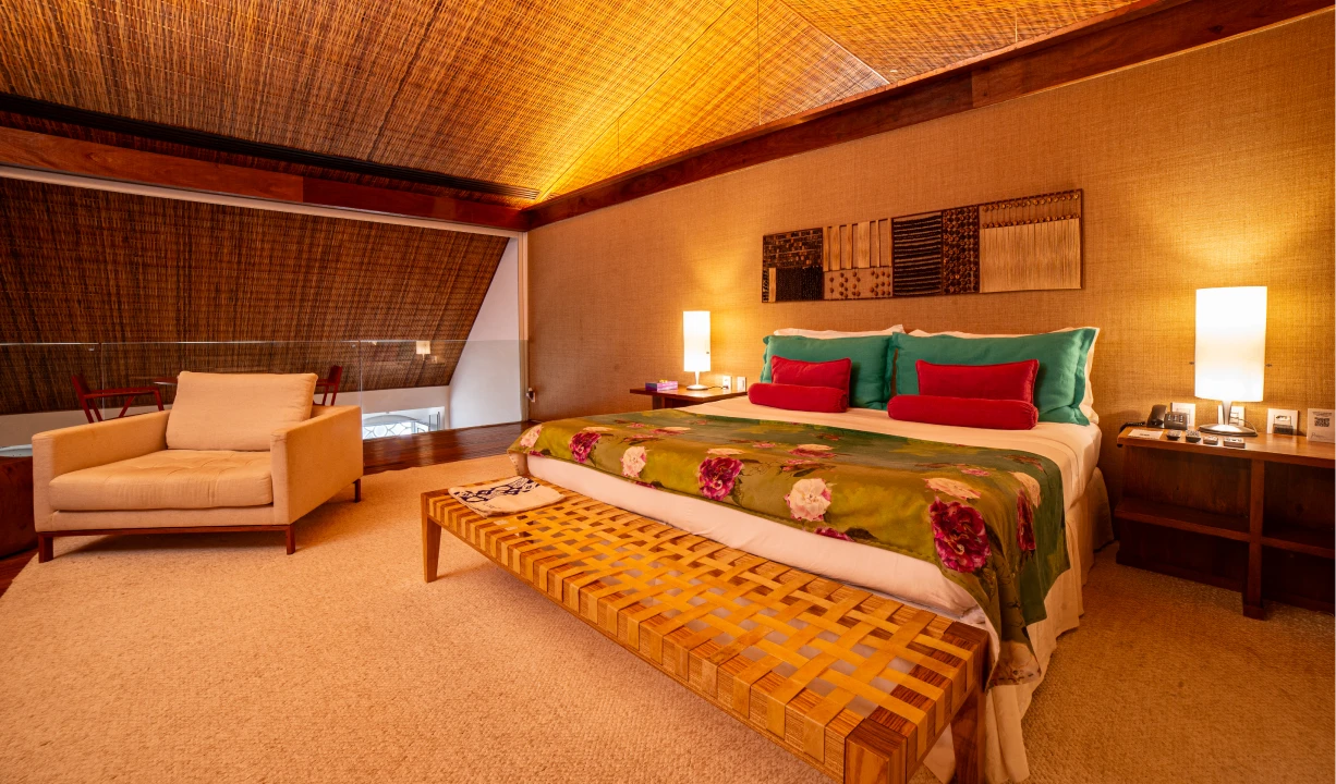 Todas as nossas suítes e villas combinam estilo moderno e tradicional, ambientes simples e sofisticados, em unidades amplas, arejadas e confortáveis, equipadas com: cama king size, lençóis de algodão Trousseau, toalhas e roupões Trousseau, ar-condicionado, cofre, frigobar, TV, amenities L’Occitane, minibiblioteca e vaga no estacionamento privativo da Pousada.