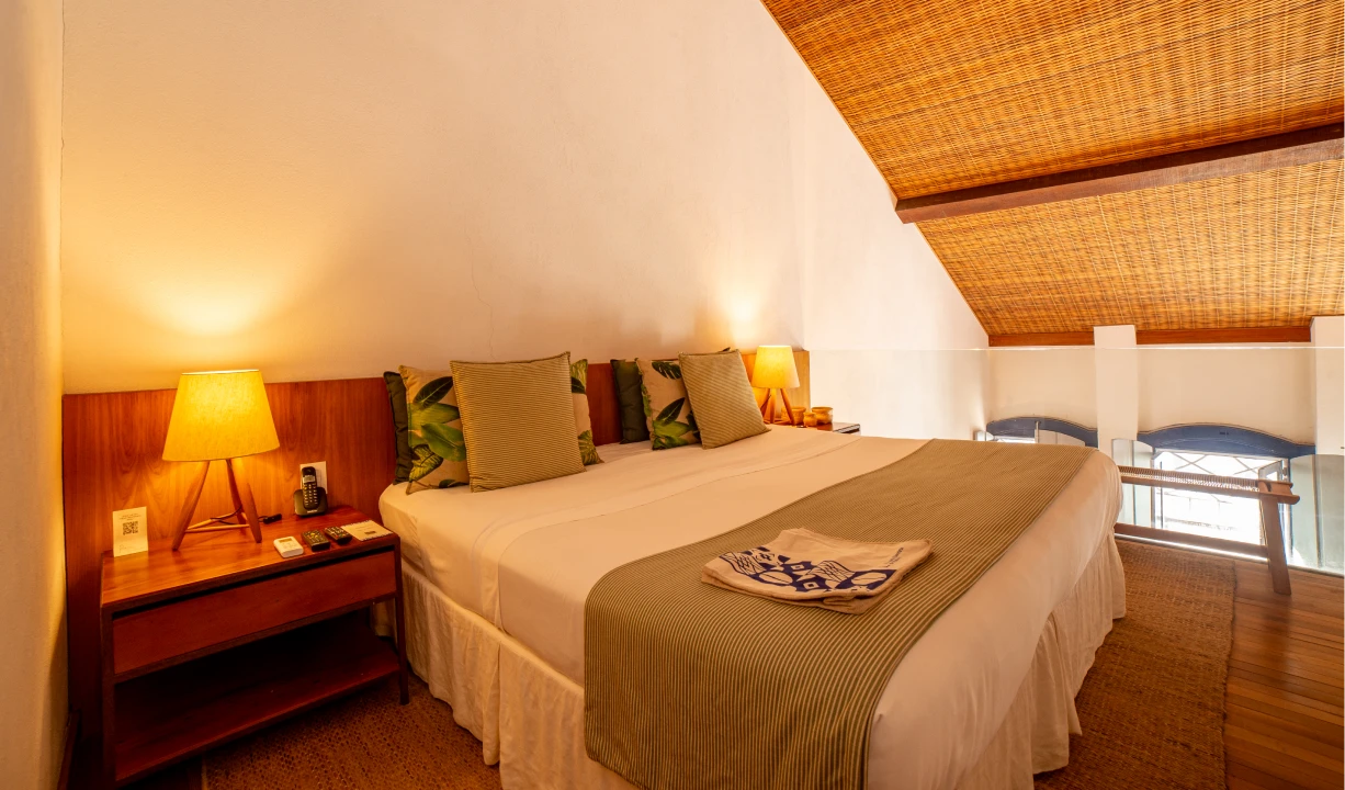 Todas as nossas suítes e villas combinam estilo moderno e tradicional, ambientes simples e sofisticados, em unidades amplas, arejadas e confortáveis, equipadas com: cama king size, lençóis de algodão Trousseau, toalhas e roupões Trousseau, ar-condicionado, cofre, frigobar, TV, amenities L’Occitane, minibiblioteca e vaga no estacionamento privativo da Pousada.