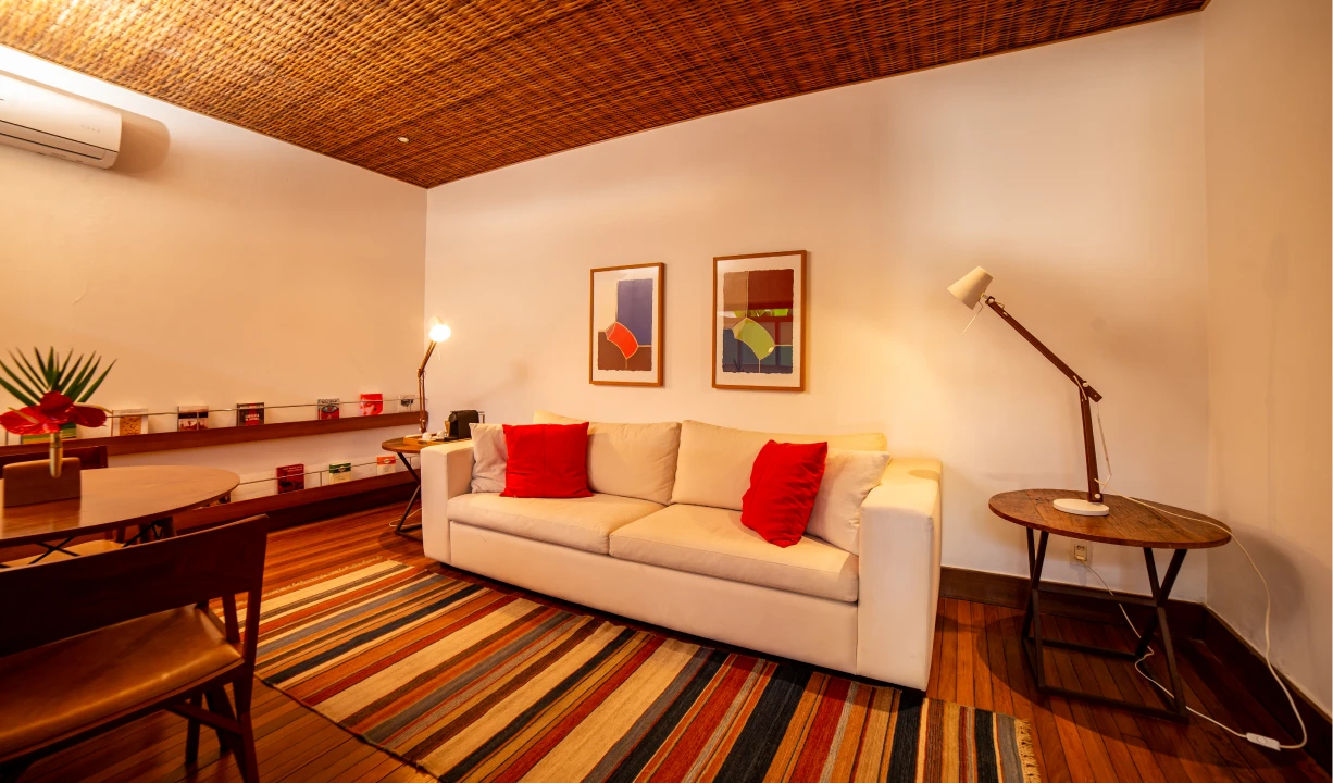 Todas as nossas suítes e villas combinam estilo moderno e tradicional, ambientes simples e sofisticados, em unidades amplas, arejadas e confortáveis, equipadas com: cama king size, lençóis de algodão Trousseau, toalhas e roupões Trousseau, ar-condicionado, cofre, frigobar, TV, amenities L’Occitane, minibiblioteca e vaga no estacionamento privativo da Pousada.